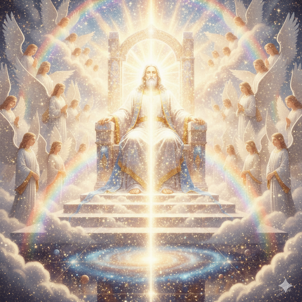 While he was in that healing presence of God, Arlin looked up to see its source—a being on a throne in another dimension, very high up. The light was too blinding for him to see details, so he looked around and saw others near him, and saw that they, too, radiated different degrees of light, and all were connected to that being on the throne — we all trace to Him; He is literally The Father.